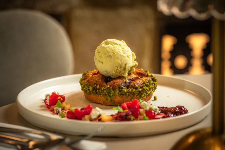Kataifi Wrap Banana, Palm Sugar, Vanilla Bean Ice Cream & Candied Nuts